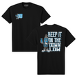 Keep It On The Down Low Tee - Black w/ Blue / Small is backordered and will ship as soon as it is back in stock.