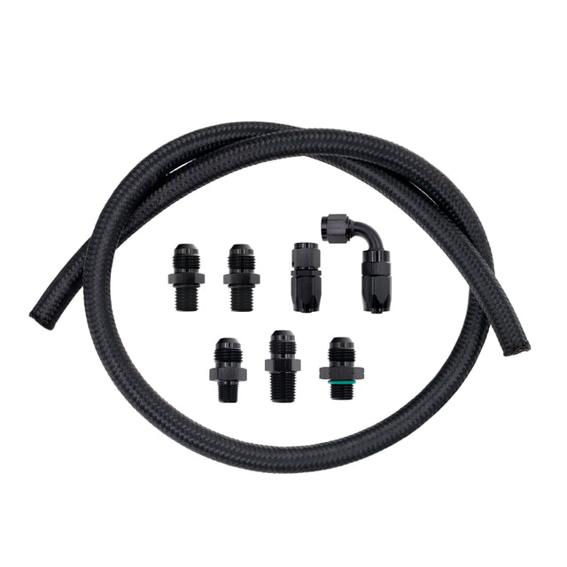 This kit is designed for guys who are making or have custom turbo set ups where none of our premade feeds will work. This kit includes all of the fittings and hose you need to assemble your own turbo Feed kit.